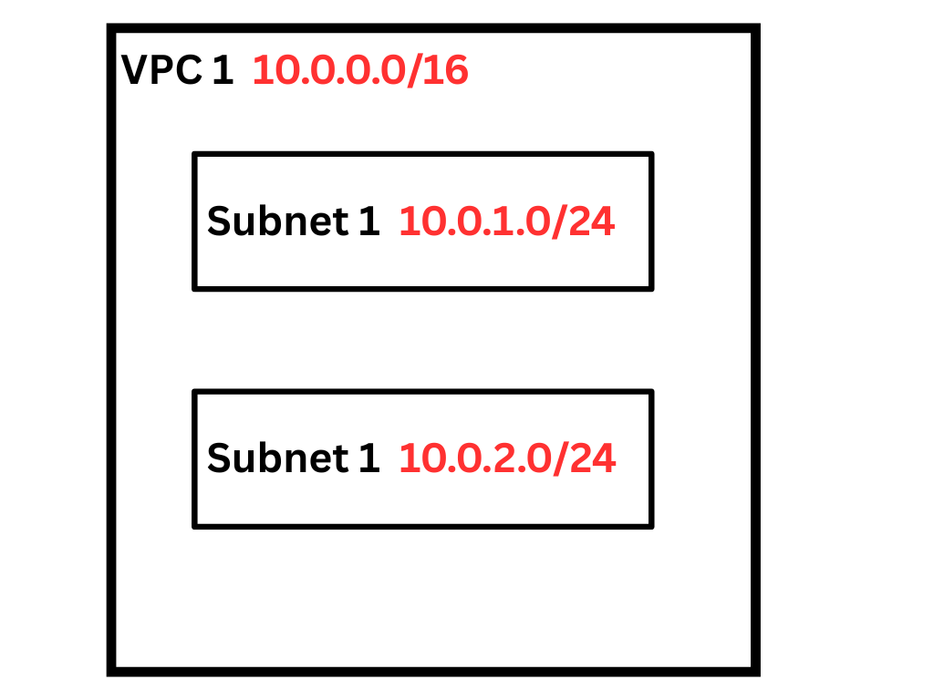 Suppose you have a CIDR range of 10.0.0.0/16 then your Subnet will be 10.0.1.0/24, 10.0.2.0/24